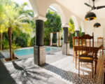 This house has three bedrooms, each equipped with a private bathroom, ceiling fan and air conditioning for your comfort. The space includes a fully equipped kitchen, spacious living and dining room, as well as a terrace perfect for enjoying the outdoors. The jewel of this property is its pool surrounded by a garden with a tropical atmosphere ideal for relaxing in the sun. It also has an additional half bathroom for added comfort and private parking.